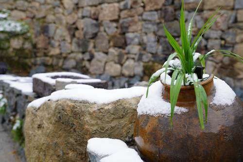 | 凌雪而开的花朵,不禁让人想起王安石的那首诗:墙角数枝梅,凌寒独自开。遥知不是雪,为有暗香来。 |