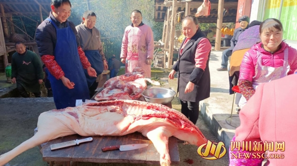 四川新闻网消息(刘佳慧 记者 杨宗友 摄影报道)秋日的暖阳下,羌寨里传出阵阵欢声笑语,正值羌历新年,“杀年猪”的场景随处可见。妇女们围坐一起话家常、切猪肉,男人们则负责宰杀、清洗。中午几十人围坐在院坝里喝酒吃肉,一派热闹的新年景象。