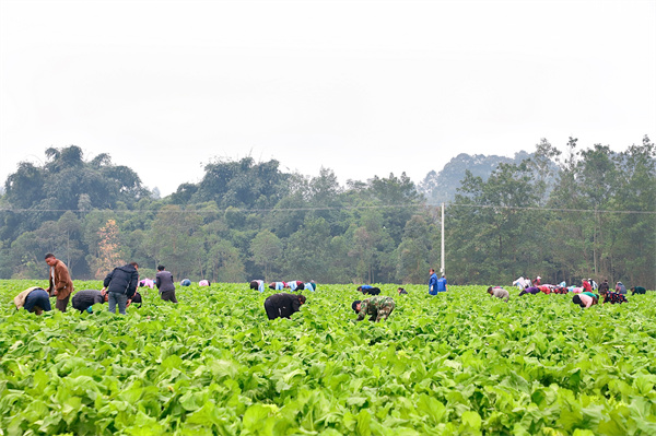 四川新闻网消息(邹勇智 李雪 记者 李举涛)初冬时节,乐山市夹江县甘江镇金银河村的优质蔬菜产业园一派丰收景象。绿色田野上,村民们正采摘鲜嫩的娃娃菜,装满一辆辆蔬菜冷链大卡车,源源不断地把夹江优质蔬菜运往全国各地。