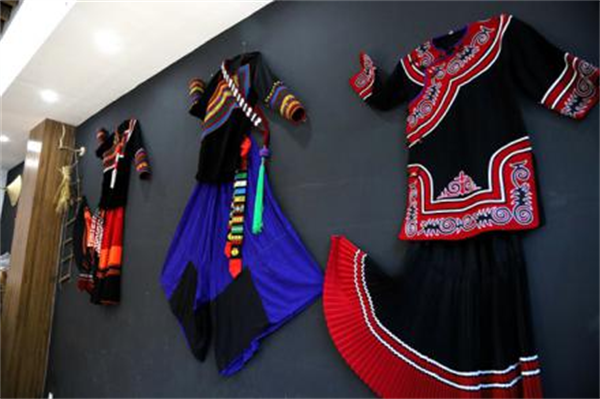 百褶裙是彝族妇女传统下装,用纯羊毛织成的百褶裙质地柔软,裙底用蓝、红、白、黑相间的细条纹拼接,色彩层次更加丰富,走起路来皱褶摇曳,轻盈飘洒,分外俏丽。