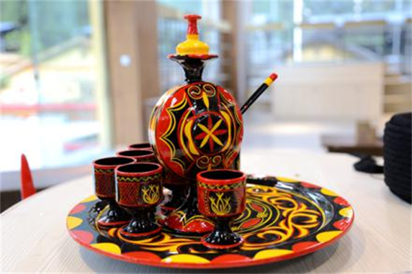 彝族漆器,是民族文化宝库中的一部分,是彝族文化艺术的瑰宝。彝族漆绘餐具十分讲究整体图案和色彩效果。色彩有红、黑、黄三色,彝族人民喜爱红色,它象征勇敢、热情;黑色表示尊贵、庄重;黄色代表美丽、光明。三色错综调配,间隔使用,色彩明快艳丽。