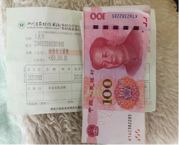 曾婆婆称,这笔35万元的存款是她今年3月存入农信社的。当时回家脱掉外套就忘了收好,结果昨天家人给她收拾不要的衣物时被放进了可回收物的回收袋里投放。