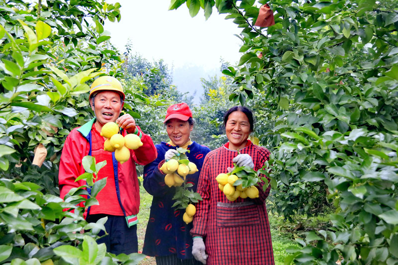12月6日,在安岳县通贤镇三学村福润家庭农场柠檬种植基地内,目之所及皆是柠檬树,扑鼻而来皆是柠檬香,前来务工的村民正忙着摘果、装篓、搬运、装车。一颗颗饱满诱人的柠檬果,在福润家庭农场的努力下,成为了村民致富增收的“黄金果”。