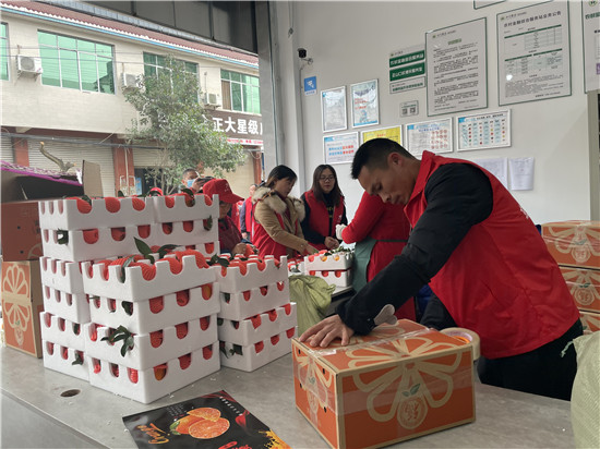 当天上午,眉山市东坡区多悦镇正山口村的党员先锋队早早地来到快递超市,采摘、选果、打包、装车党员志愿者们有条不紊,忙得不亦乐乎,1000箱爱媛橙承载着全村人民的祝福出发了。
