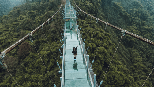 全景高空走廊不仅是高空体验项目的重点部分,还是连接平乐古镇与龙门山生物多样性博览园项目的重要“枢纽”。