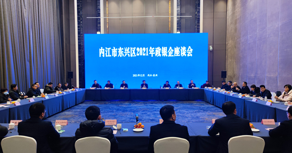 四川新闻网消息(李永琴)12月29日,内江市东兴区召开2021年政银企座谈会,相关政府部门、金融机构及多家企业汇聚一堂,共商东兴发展大计,共谋合作共赢之策。