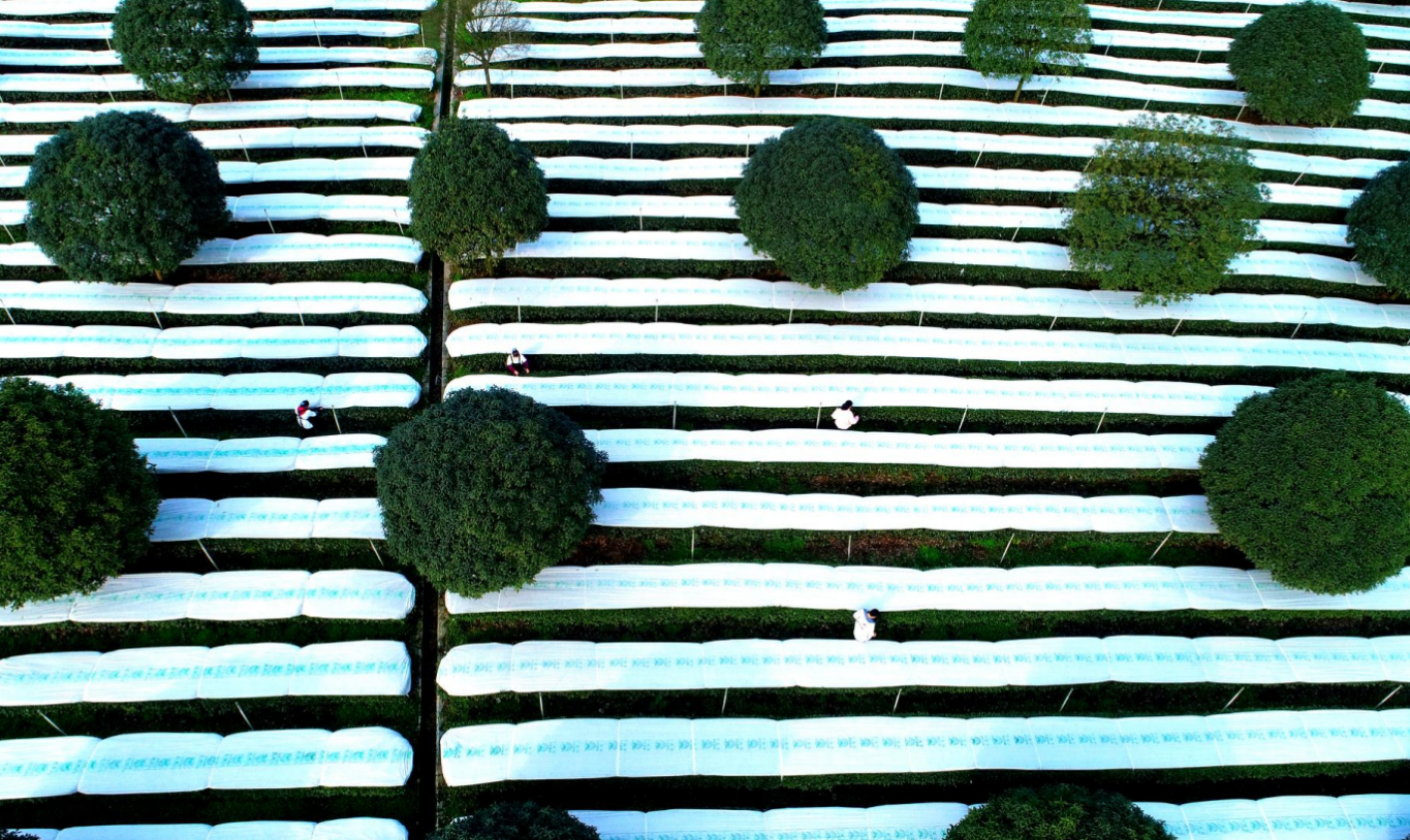 四川新闻网消息 1月5日,小寒时节。在四川宜宾高县来复镇大屋村早白尖生态茶园,茶农们穿梭在一排排修剪整齐的茶树间,为茶树穿上避寒保温的薄膜“冬衣”,确保来年春茶提早上市,增产增收。连绵茶山,宛如银蛇狂舞,蔚为壮观。