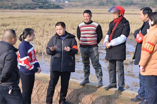 “去年,水管没安到田边,田里没水,犁都犁不动,今年好了,田里原本蓄了一点水,缺一点就打开田边的闸阀补充一点,你看嘛,这就好犁了赛!春节前,我就把12亩‘川香优6203’水稻种子买回家了,肥料也备足了,现在早点把田整出来。”邹兴政接过香烟点燃后,深深吸了一口然后从鼻子里嘴里吐出烟圈,再漫不经心地手指田间对镇干部和农业服务中心技术员一行说。随即,农技员向他作农技培训。