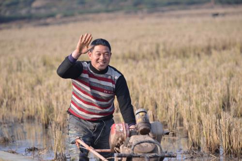 “喂!邹大哥,把火熄了(停一下耕整机作业),过来抽支烟,休息一哈儿!”站在田边水泥路生产道路上的村党支部书记李红大声吆喝邹兴政。他绕了一大圈,从20多米远的田中间把“铁牛”赶到了田边,所过之处稻桩都被埋在了泥土之下。此刻,新鲜出炉的泥土芳香扑鼻而来。