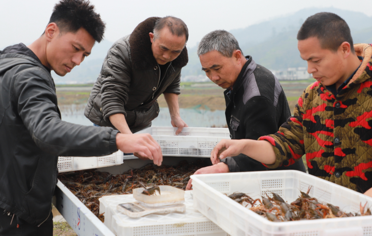 随着一笼笼稻虾被陆续拉起,一只只色泽鲜亮、活蹦乱跳的小龙虾跃出水面,随即运送到岸边的分拣区域,进行称重、分类、打包、装箱、运送。“从今天的捕捞情况来看,虾子相当肥美,虾身干净,预计捕捞600斤左右,达到了预期效果,实现了开门红。”兴文县虾多乐小龙虾养殖专业合作社负责人李红利乐呵呵地说。