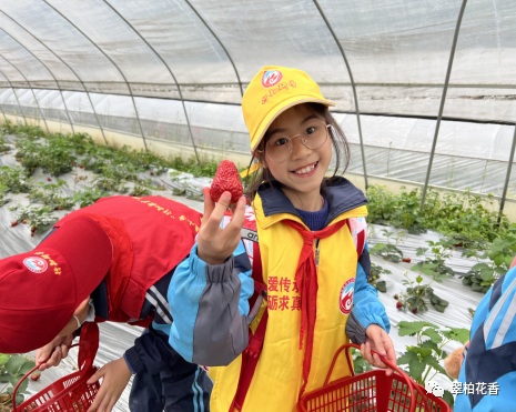 采摘园内,小朋友们化身小农夫,在草莓大棚里辛勤“劳作”,零距离观察草莓,了解草莓的种植环境、培育过程,亲身感受农民伯伯种庄稼的辛苦和不易。在工作人员的悉心指导下,孩子们迫不及待地提着小篮采摘自己喜欢的“果实”,在欢声笑语中体验劳动与收获的乐趣。