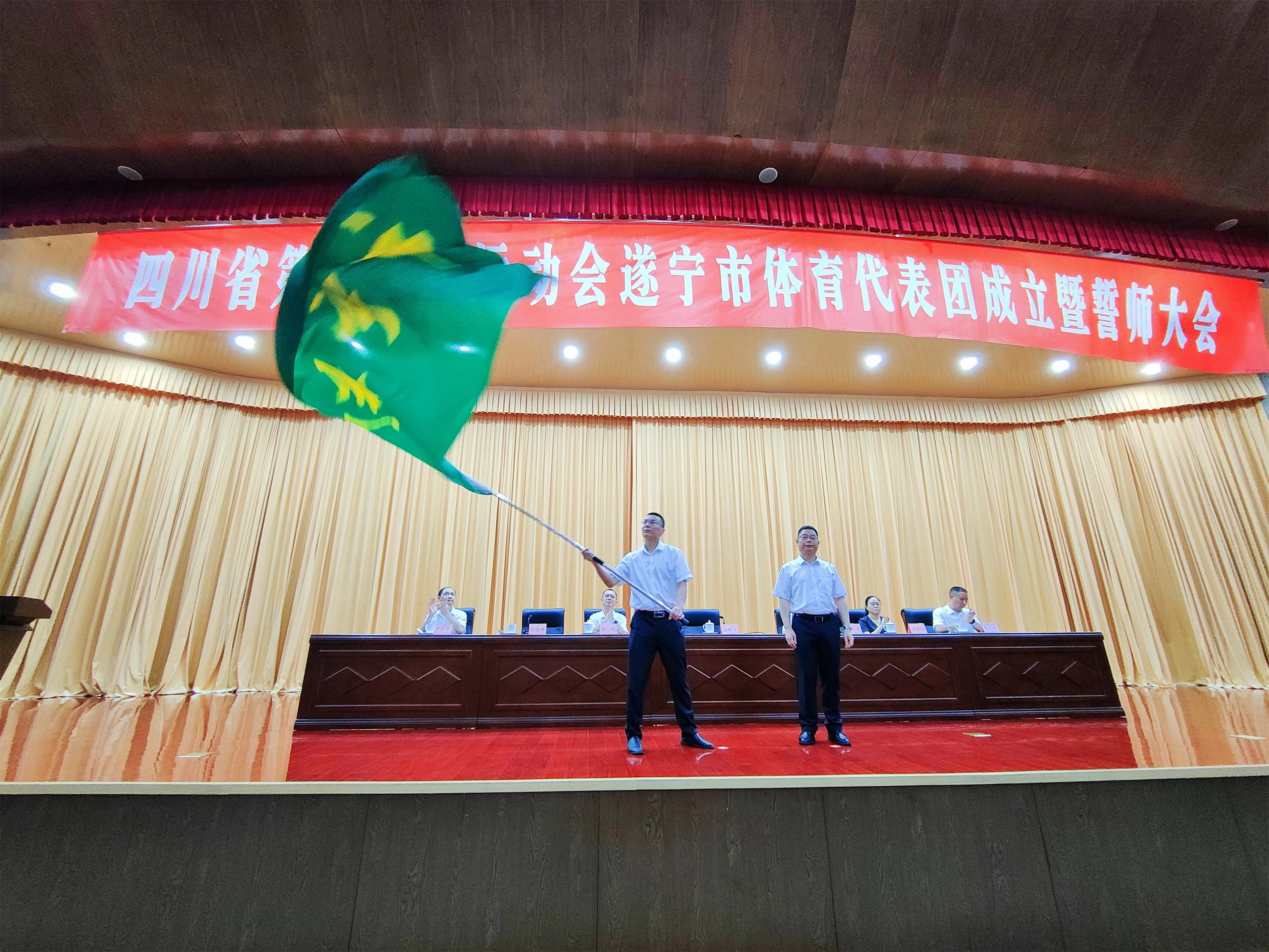 四川新闻网消息(袁方绪图/文) 7月13日,四川省第十四届运动会遂宁市体育代表团成立暨誓师大会顺利召开。遂宁市委常委、组织部部长张鹏飞为代表团授旗并作动员讲话,遂宁市人民政府副市长张智勇主持会议。