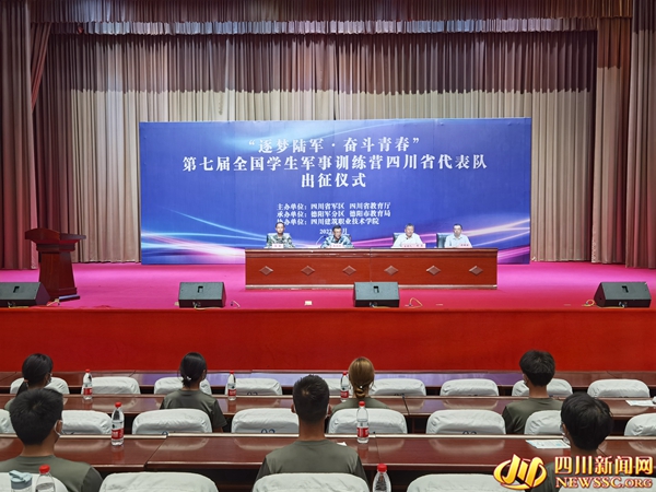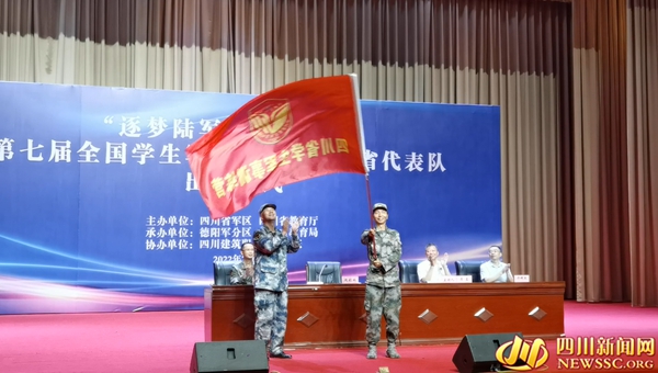 四川新闻网消息(贺羽 记者 陈斯 摄影报道) 7月21日,第七届全国学生军事训练营四川省代表队出征仪式在四川建筑职业技术学院举行。德阳市委常委、德阳军分区司令员赵创业为代表队授省旗。