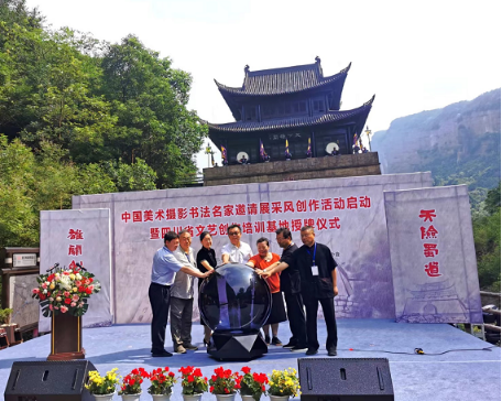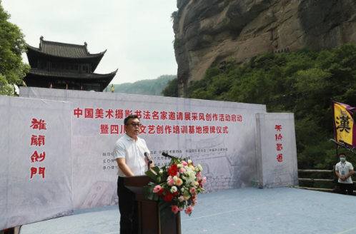 四川新闻网消息(王光民 蒲妍如 李全民)7月26日,中国美术摄影书法名家邀请展采风创作活动启动暨四川省文艺创作培训基地授牌仪式在广元市剑阁县剑门关关楼广场举行。