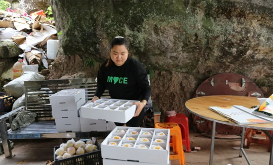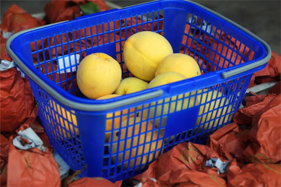 袁家坪村黄桃园占地300余亩,品种为锦绣黄桃。锦绣黄桃外观漂亮,肉色金黄,果形整齐匀称,风味诱人。基地一旁的分拣点,工人们正忙着将采摘下的黄桃进行套袋、打包,称重……现场一片繁忙的景象。包装工人陈小芳告诉记者,她平时在家带小孩,基地里有需要打包装的时候就过来,一天有六七十块钱的收入。