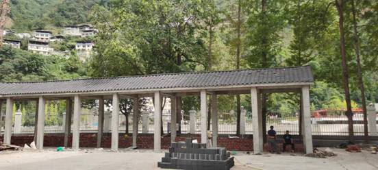 在金口河区延风中学综合楼、宿舍楼维修和校园提升改造项目建设现场,工人们正在对彩色透水混凝土地面铺设和雕像制作安装工作。当前,项目已完成综合楼和学生宿舍楼坡屋面改造和外墙纸皮砖粘贴施工、200米围墙改造和廊桥主体施工,整体建设内容已完成95%,即将投入使用。