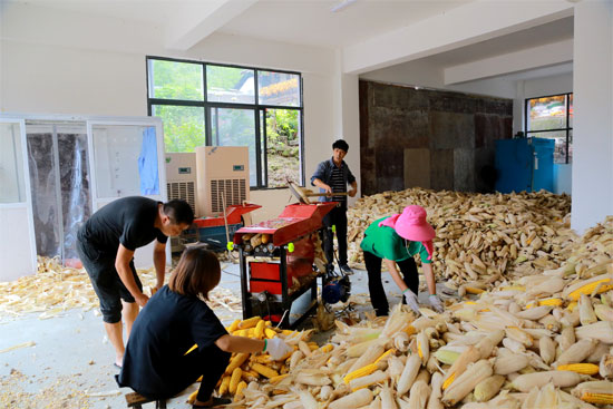 俗话说:“三春不如一秋忙,收到家里才是粮。”入秋以来,万源市遭遇连续降雨天气,对秋收造成一定的影响。种植大户蒲勤已把玉米收回家里,正组织人员用进行剥壳机和脱粒机进行剥壳等后续工作。