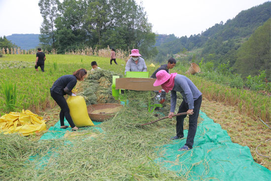 万源市属于喀斯特地貌,山地多,遵循该市水稻种植空间分布态势,采取分类分区收割作业,对成片连带、高标准农田、水稻种植富集区等规模化、集约化水稻种植区域推广中小型联合收割机;对水稻种植小田、小块用传统手工打谷法和小型打谷机进行收割,实现了传统手工与机械作业互补,大幅提升水稻收割作业率。同时,相关农业技术人员也第一时间前往现场,为广大农民抢收稻谷做好技术服务。