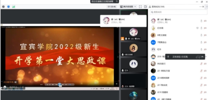 四川新闻网消息(陈强 记者 周瑜原)9月15日,宜宾学院迎来5900余名2022级新生们,因疫情原因,学校给同学们组织了一场特别的入学教育,在线观看学习题为《牢记嘱托感恩奋进——争做堪当民族复兴重任的时代新人》的“宜宾学院2022级新生开学第一堂大思政课”。