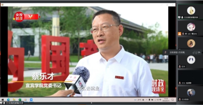 在视频第二部分“牢记嘱托勇毅前行着力培养创新型应用人才”中,宜宾学院党委书记蔡乐才向同学们详细介绍了创新型应用人才培养工作开展的探索与实践。自2019年学校第三次党代会以来,宜宾学院全面实施“党建统揽”“立心铸魂”两大工程,坚守“立德树人”初心,坚持“德智体美劳”五育并举,融入区域发展打造优势专业集群,构建“四维一体”创新素质培养课程体系,“多元协同”培养具有创新素质和能力的应用型人才。