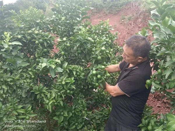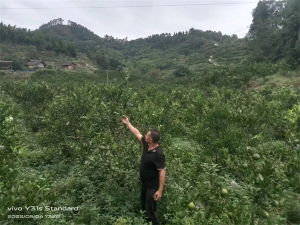 今年49岁的李健,以前从事建筑工程,积累了一笔资金。2015年,他通过市场调查了解到,规模化种植良种柑橘,巿场需求量大,经济效益好。于是,他在镇、村的大力支持下,在东旗村6组流转土地300亩,种植市场畅销的“春见”良种耙耙柑。2017年9月,又种植了120亩中熟柑橘“金秋砂糖橘”。目前,果园面积500亩,投资400多万元。他坚持采用“无公害”种植技术,施用有机肥,种出的柑橘品质好,卖相佳,不愁销路,2017年还被评为“四川名优农产品”。今年的柑橘,虽然还是青青小果,但已有近50%被浙江、上海、成都等地的果商下单预定了。