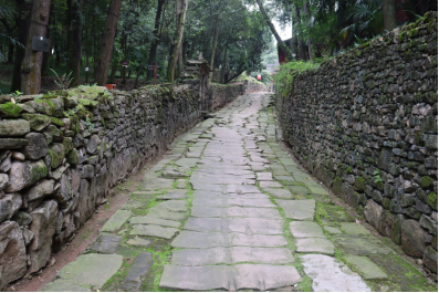 走进雄伟的城门,正中就是金牛古道,这是蜀地历史上最早的一条官道,由石板砌成,岁月留痕,车辙深邃,依稀可见。