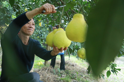 凤鸣镇牌坊村党支部书记周传宾说:“今年我们为老百姓争取了一个项目,进行了公路硬化,现在有更多老板愿意来购买真龙柚了。”