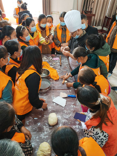 面点师从中式面点的常用原料、风味特色、一般工艺流程等进行了全面的讲授,主要指导学员们学习制作饺子、馒头、包子、花卷等面点。学员们边听、边练,逐渐掌握了面粉配比、揉面的科学方法,学会了一门就业创业技能。