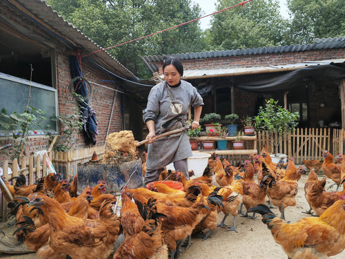 “我们村山地多,水质好,空气清新,用玉米、麦子、豆子伴青饲料,完全是原生态饲养的鸡。”童琼说,去年受疫情的影响,她的鸡销路受到影响。