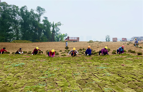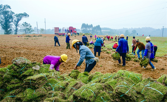 四川新闻网消息 近日,走进眉山市洪雅县“牛仔牧场”项目建设现场,一派热火朝天、大干快上的建设场景呈现在眼前:在草坪婚礼区域,数百名工人忙着卸车、拉运、铺设草皮。
