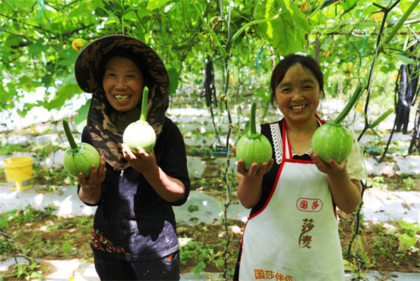 今年7月,金河镇同心村千亩蔬菜基地迎来了新一轮丰收季,老百姓手捧自家种植的吊南,收获的幸福溢于言表。
