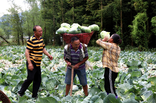 今年8月,永胜乡瓦山村3000亩莲花白迎来大丰收,村民童恒成喜笑颜开。