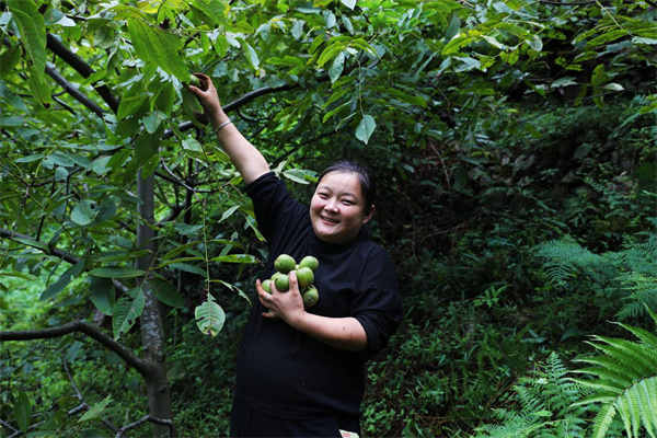 共安彝族乡文店村三组金丰核桃种植专业合作社的核桃园迎来收获,一颗颗圆润饱满的核桃成为村民致富“金果果”。