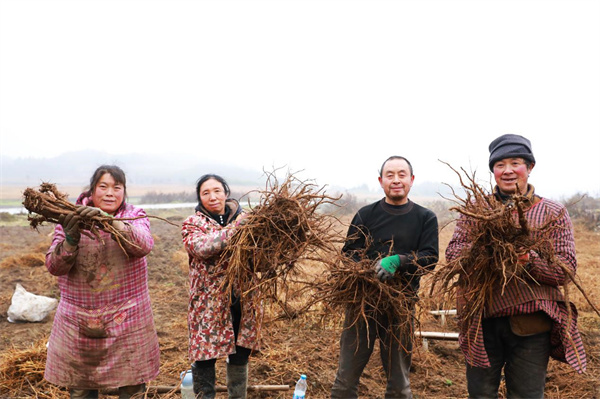 在永胜乡川牛膝中药材现代农业园,药农们正在采收川牛膝,又是收获满满的一年。