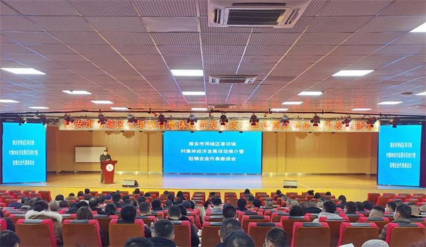 草坝镇党委书记王梦然对与会的领导、嘉宾和企业代表的到来表示热烈欢迎和衷心的感谢。他表示,草坝镇在成渝双城经济圈建设、雅州新区文教新城建设等重大战略部署中迎来了前所未有的发展机遇,草坝镇区位优势显著,资源禀赋优越,发展势头正劲,在上级党委政府的坚强领导下,在帮扶单位和社会各界一如既往的关心支持下,草坝镇村集体经济一定能够迈上新台阶,定能在建设川藏铁路第一城、绿色发展示范市中展现新作为、彰显新担当。并诚挚邀请广大企业到草坝考察洽谈、投资兴业。