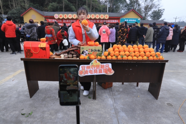 据安州区商务局电商办相关负责人介绍,春节前夕,安州电商企业积极参加各大电商平台“双12”“年货节”活动,川蜀老味道、山药视频、菜油莲妹儿农产品等电商企业深入挖掘安州农产品,通过直播销售皮蛋、水果、粮油、香肠腊肉等农特产品,直播销售额达600余万元。