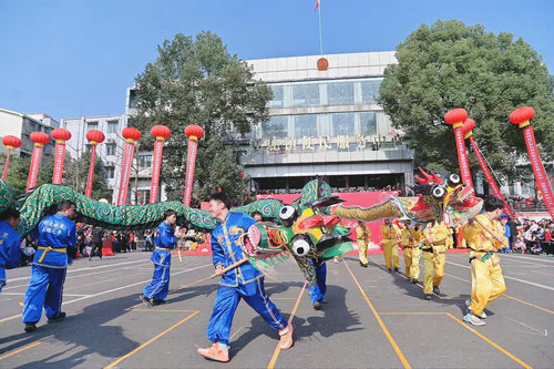 敲起锣鼓、舞起扇子、扭起秧歌、喜庆欢腾的舞龙,舞出了群众满腔的幸福,引燃了过年的喜庆气氛。在铿锵有力的鼓点声中,身着盛装的民俗表演队员个个精神抖擞,踏着音乐尽情表演,笑意写在脸上,喜庆荡漾心间,让大家切实感受到了红红火火的浓浓年味。