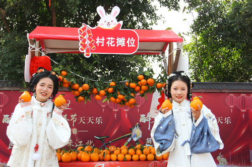 书记牌甘蔗汁、镇长牌炸鱼虾、村花耙耙柑...江北特色供不应求,烤肥肠、糖葫芦、花式气球...大学生三轮车集市好不热闹,两侧摊位上的商品更是琳琅满目,顾客和摊主们讨价还价声此起彼伏,现场热闹非凡,年味浓浓。