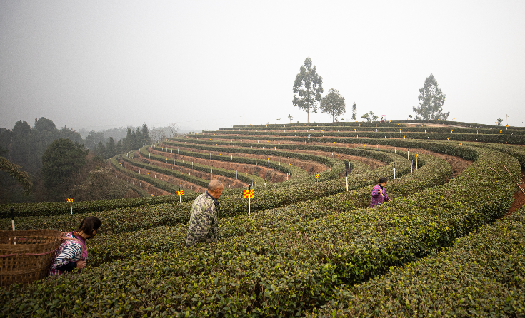 四川新闻网消息(周瑜原 叶昌荣)宜宾市翠屏区地处平坝丘陵地区,由于其独特的气候条件,其采茶时间比国内同纬度其他主产区早30-45天。2月9日,笔者在位于翠屏区金秋湖镇的川茶基地看到,茶农们忙碌在一列列整齐的茶树间,采摘着最鲜嫩的早茶。另一些茶农则正在着修整茶园,清理过道,为即将在这里举办的早茶采摘活动做最后准备。