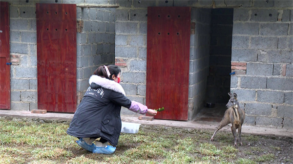养殖厂主人杨检琼像往常一样拿着饲草料喂养林麝,开始了一天的忙碌。她家从2016年开始修建圈舍养殖林麝,这几年,不断培优壮大林麝养殖特色产业,目前养殖基地占地3000多平方米,成功从最初的10余头发展到现在的30余头林麝。