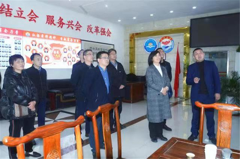 刘建红一行参观了商会的文化长廊和办公场所、商会展厅情况。代市镇商会会长孙钢就商会日常工作开展情况、党组织建设以及商会发展历程、组织架构、会员状况等方面进行了简要汇报。