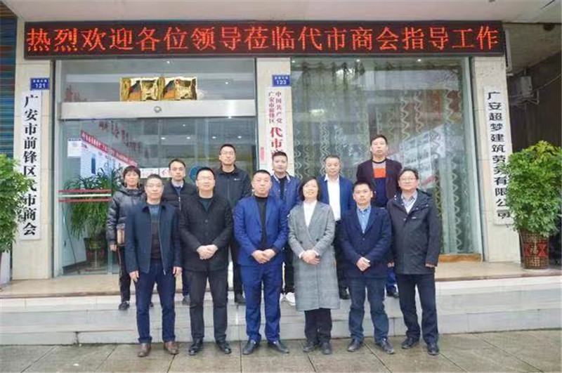四川新闻网消息 3月24日下午,广安市委统战部副部长、市政府侨办主任刘建红一行赴前锋区代市镇商会调研指导工作;前锋区委统战部常务副部长刘伟、代市镇党委书记杨斌陪同调研。