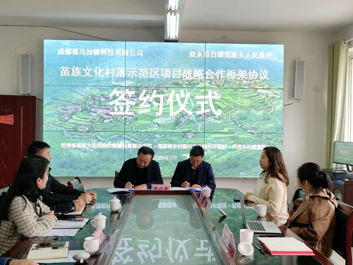 四川新闻网消息 推动少数民族文化产业为乡村振兴赋能引航,是叙永县乡村振兴进阶的重要课题。3月25日,白腊苗族乡人民政府与成都喜马拉雅科技有限公司就白腊苗族乡苗族文化村落示范区项目签订战略合作框架协议。叙永县投资促进中心、县文广旅局相关领导出席并共同见证协议签署。
