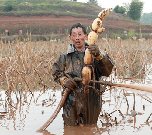 “挖藕不仅是体力活,还是技术活,想要快速完整地挖出藕,需要长期的练习。”挖藕工人汪晓飞说,“现在挖藕都是用高压水枪,方便快捷还不容易伤到莲藕,一天工作10小时能挖1000余斤,有800元左右的收入。”挖藕的工资一般按斤算,干得多就赚得多,虽然辛苦,但一天下来收入很可观。