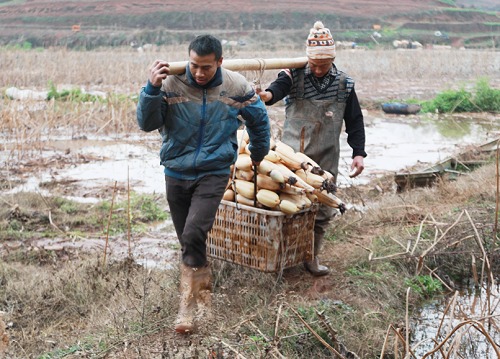 据了解,目前,正是莲藕上市季节,西坛村的河藕基地共800余亩,平均亩产量可达3000余斤。“我们每天销售一万多斤莲藕,为了保证莲藕新鲜,每天采挖的莲藕当天下午就要运往各大型农贸市场、大型商超、学校等地售卖。”金龙镇西坛村返乡创业乡贤、河藕基地负责人王剑说,“现在每天都有近10名工人在挖藕,预计5月底能完成莲藕采挖,产值达700万元”。