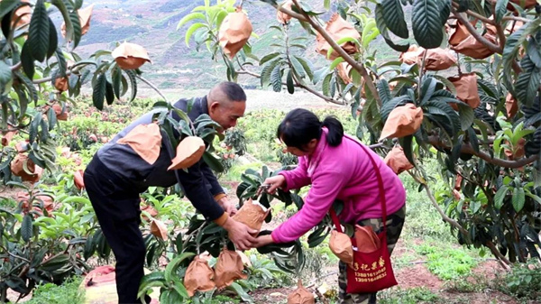 凭借着得天独厚的地理和气候优势,顺河乡管山村的枇杷上市早,外观金黄,果实大而甜。枇杷园里,果香阵阵,随着枇杷陆续成熟上市,李伟夫妻二人实现持续增收。