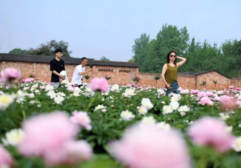 四川新闻网-首屏新闻乐山4月14日讯(记者 李举涛 摄影报道)连日来,乐山峨眉山市符溪镇雷场村,数十亩芍药花开满园。粉白娇嫩的花朵层层叠叠,散发出淡雅的幽香,吸引不少市民游客前来踏春寻芳。