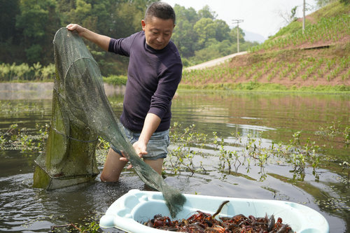 “这是今年的第一批捕捞作业,种完秧苗后,还要放一批虾苗,一年可以收两季。预计每亩将起水400斤小龙虾,销售收入上万元!”说起今年的稻虾养殖形势,廖向明一脸喜悦。