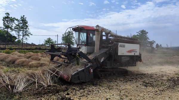 “今年我种植油菜480亩,往年人工收割,耗时费力,今年有农机服务队帮忙,几台机子不到一天就收割完了,收得很干净,还没有收费,省心又实惠,太感谢你们哦!”富荣村种植大户范建平感慨道。