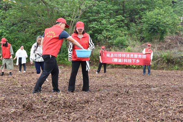 四川新闻网消息 5月19日,是荣县开展全国科技周的第一天。这天,天上下着贵如油的细雨,地上有些泥泞;这天,荣县科技和经济信息化局携手荣县农业农村局科技特派团(粮油)约6名专家,蹲田边下田块,手把手教村民播种旱稻,手指病苗传授赤枯病防治技术。稀泥裹满双脚,技术留在田野,科技促农初心写在老百姓心坎上。